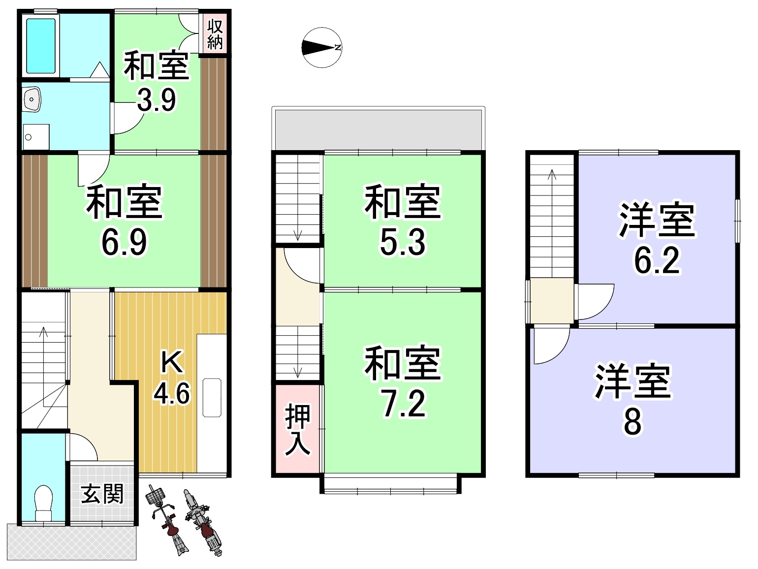 | 土地面積 | 49.59㎡(15.00坪) | 建物面積 | 93.78㎡(28.36坪) |